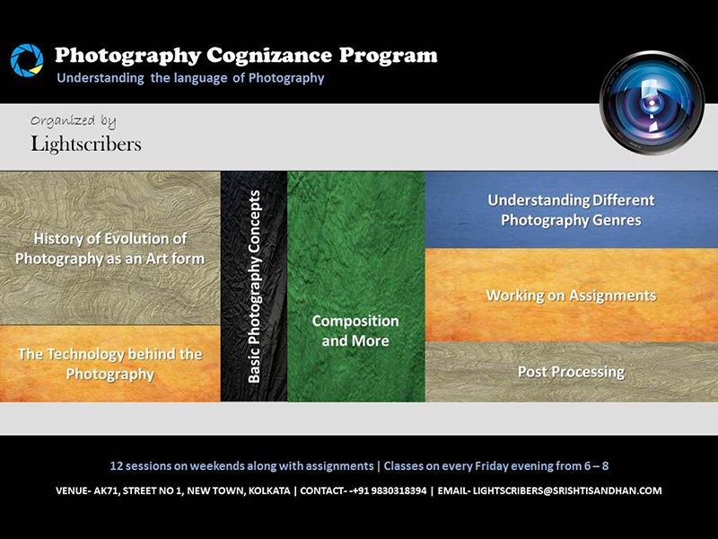 Photography Academy is an initiative from Lightscribers. This initiative would promote Visual Literacy through the language of Photography and spread interest in this form of art. As part of this initiative, the academy would be conducting multiple curriculums and workshops for the photo enthusiasts. Following are the highlights.