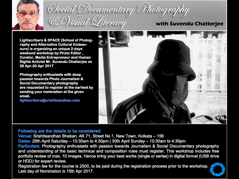 Lightscribers & SPACE are organizing a unique 2-days weekend workshop by Photo editor, Curator, Media Entrepreneur and Human Rights Activist Mr. Suvendu Chatterjee on 29 Apr-30 Apr 2017